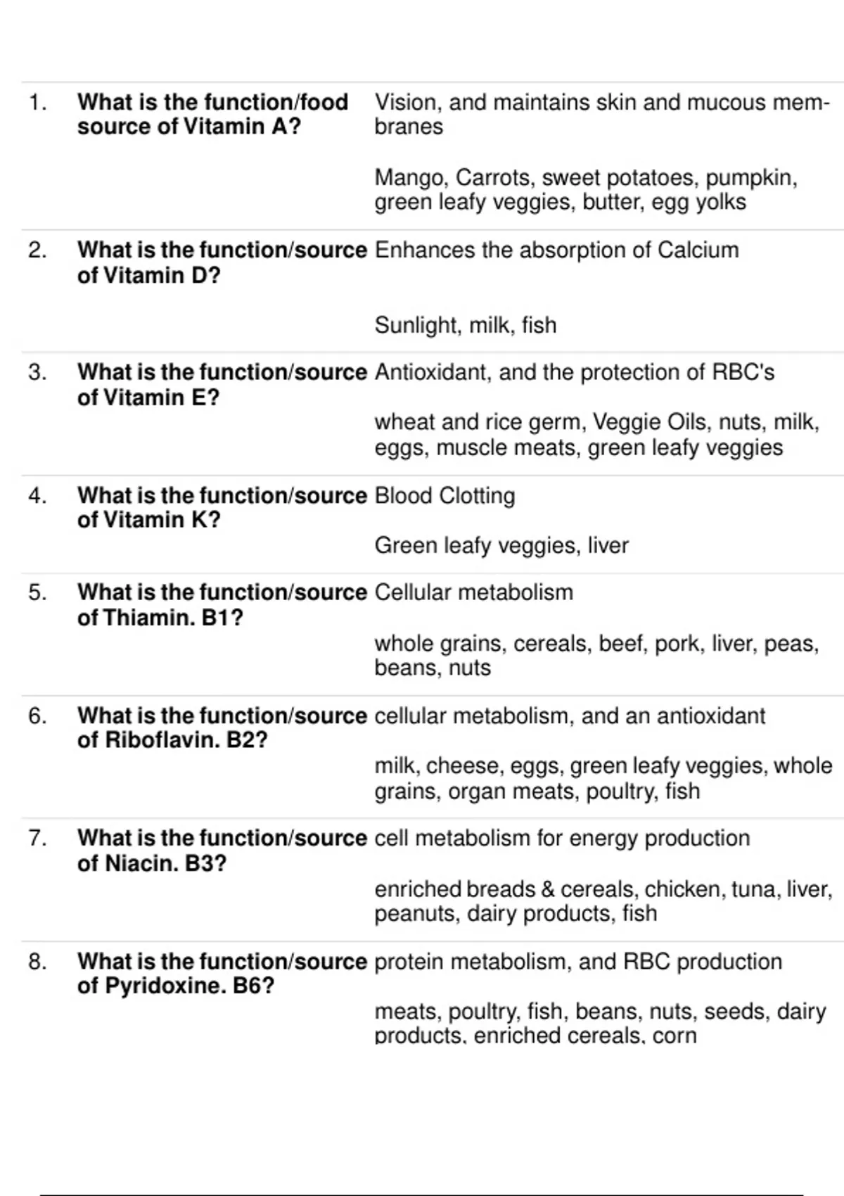 1. What is the function/food Vision, and maintains skin and mucous mem-