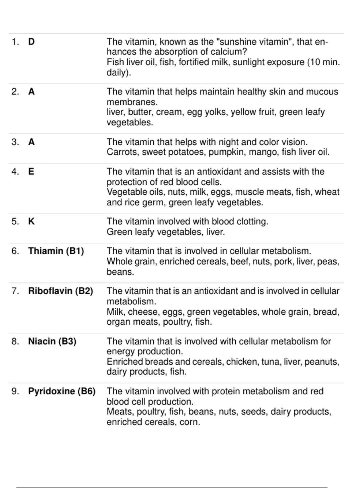 9. Pyridoxine (B6) The vitamin involved with protein metabolism and red