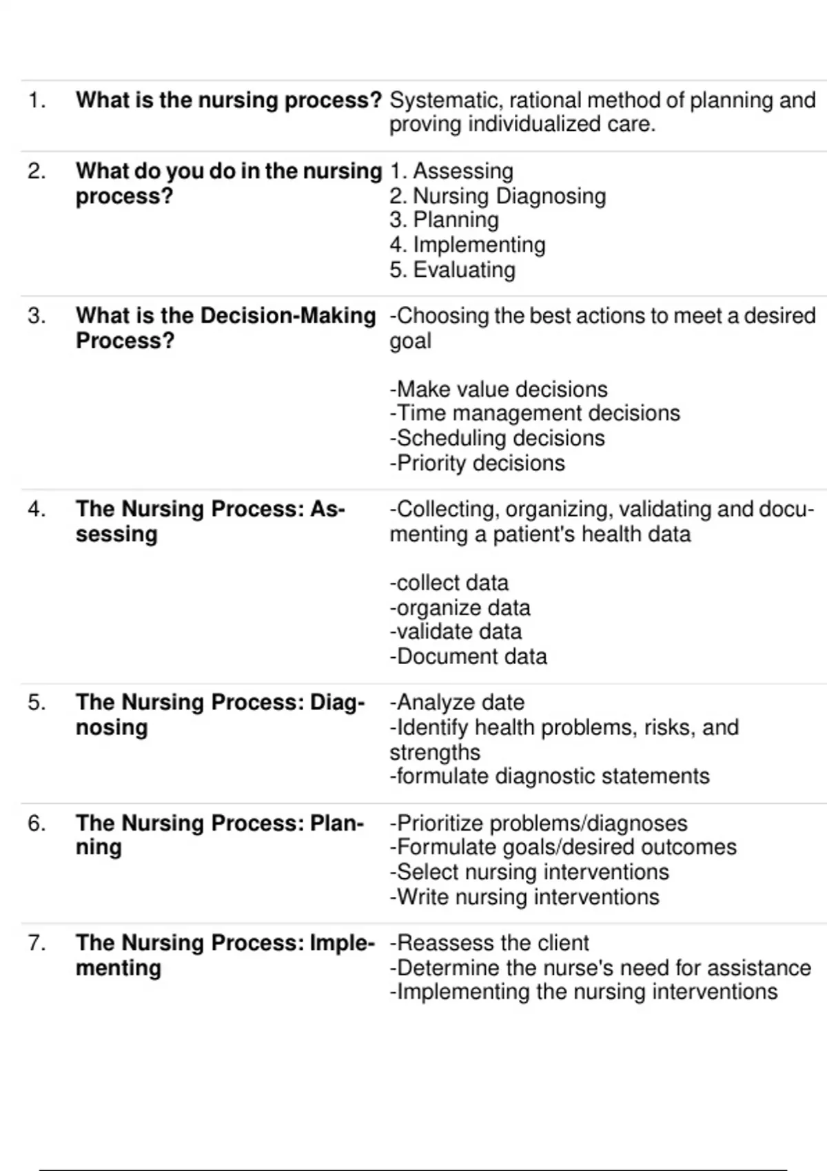 1. What is the nursing process? Systematic, rational method of planning and