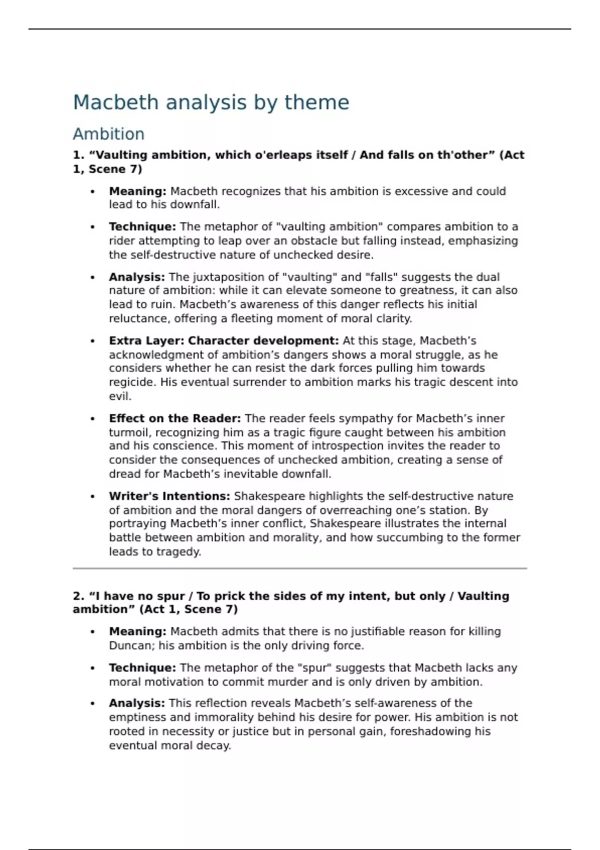 1. “Vaulting ambition, which o'erleaps itself / And falls on th'other” (Act