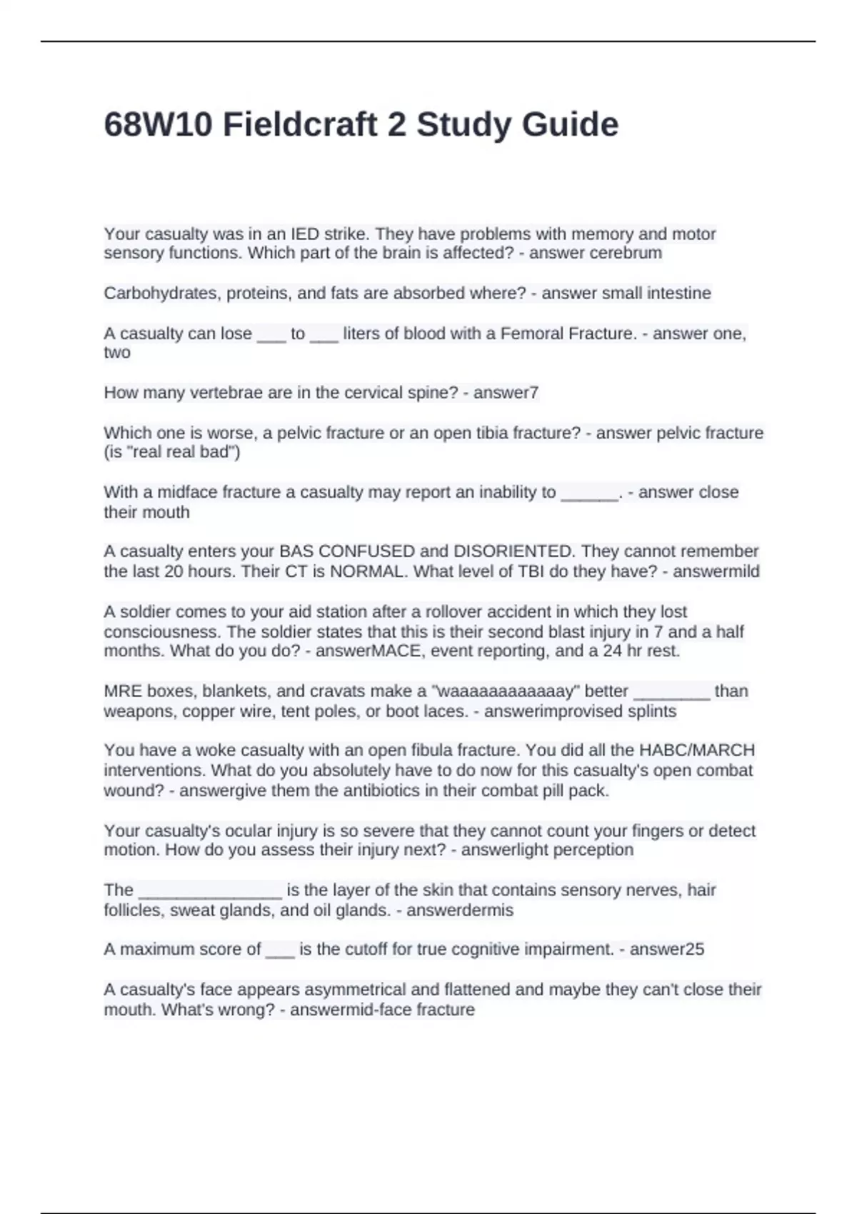 68W10 Fieldcraft 2 Study Guide Questions and Answers Fully Solved