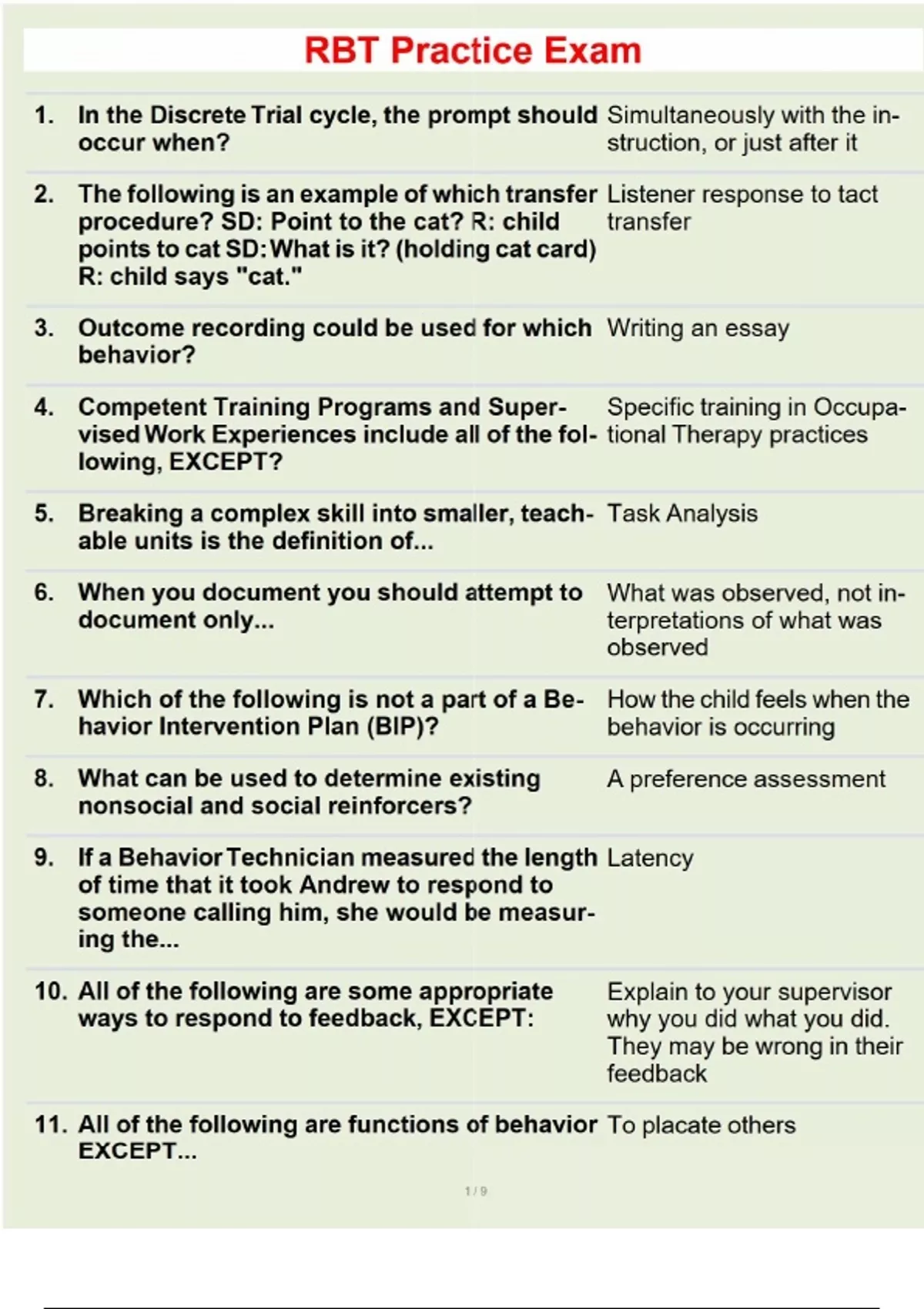 RBT Exam Practice Questions and Answers STUDY BUNDLE 2024/2025