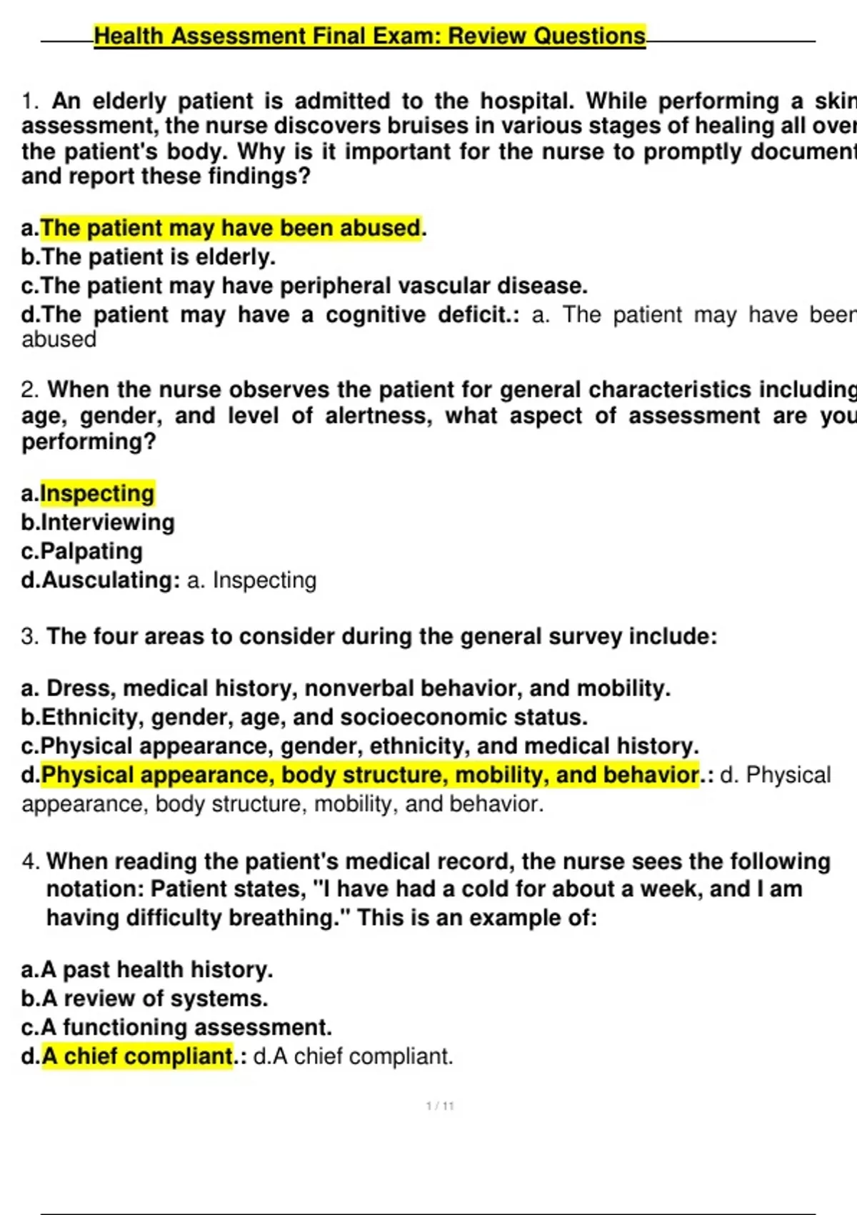 , Health Assessment Final Exam: Review Questions