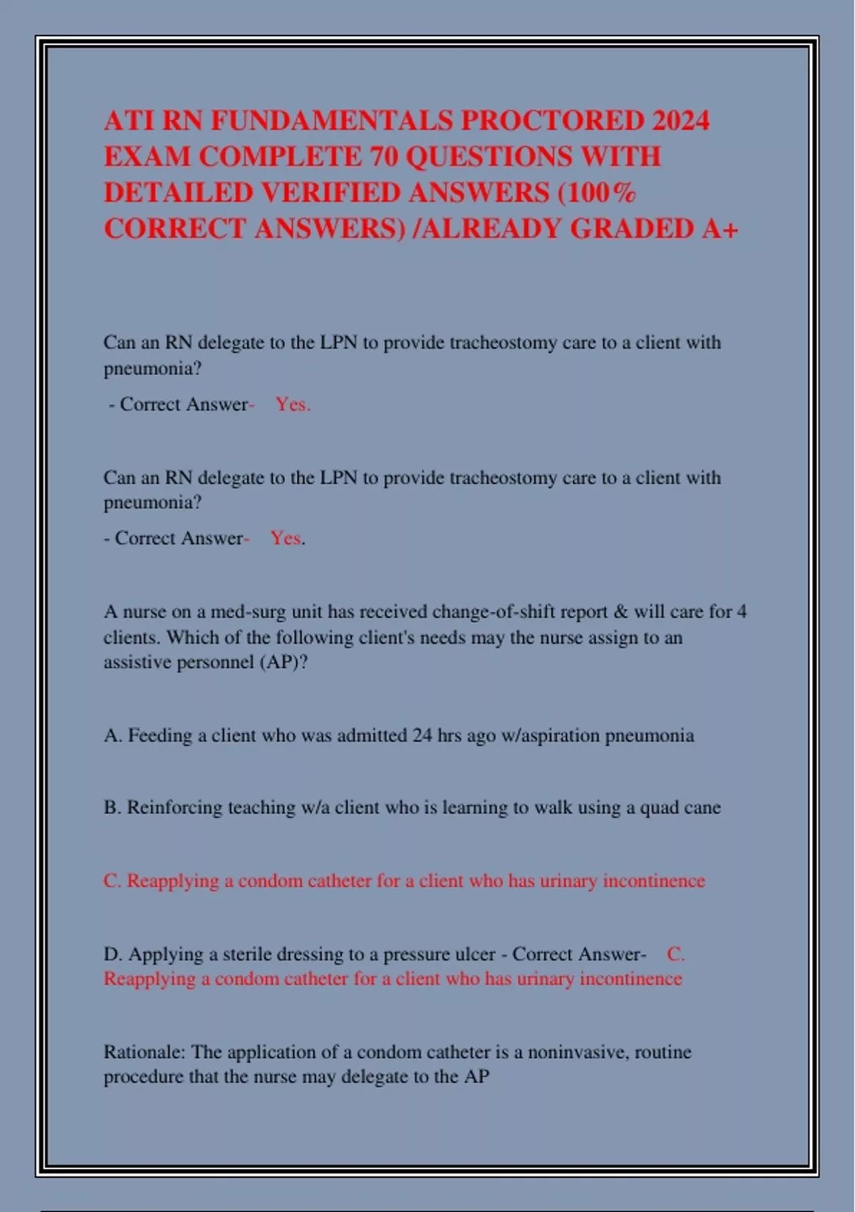 EXAM COMPLETE 70 QUESTIONS WITH