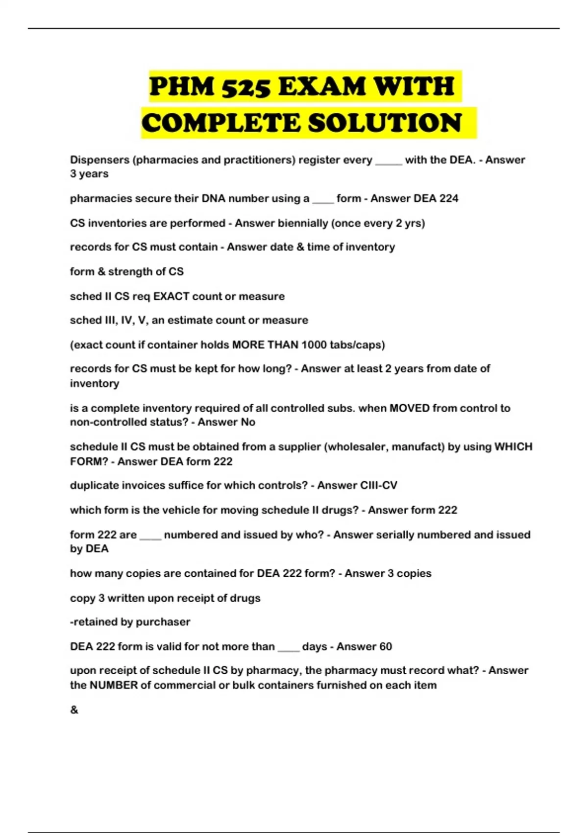 PHM 525 EXAM WITH COMPLETE SOLUTION