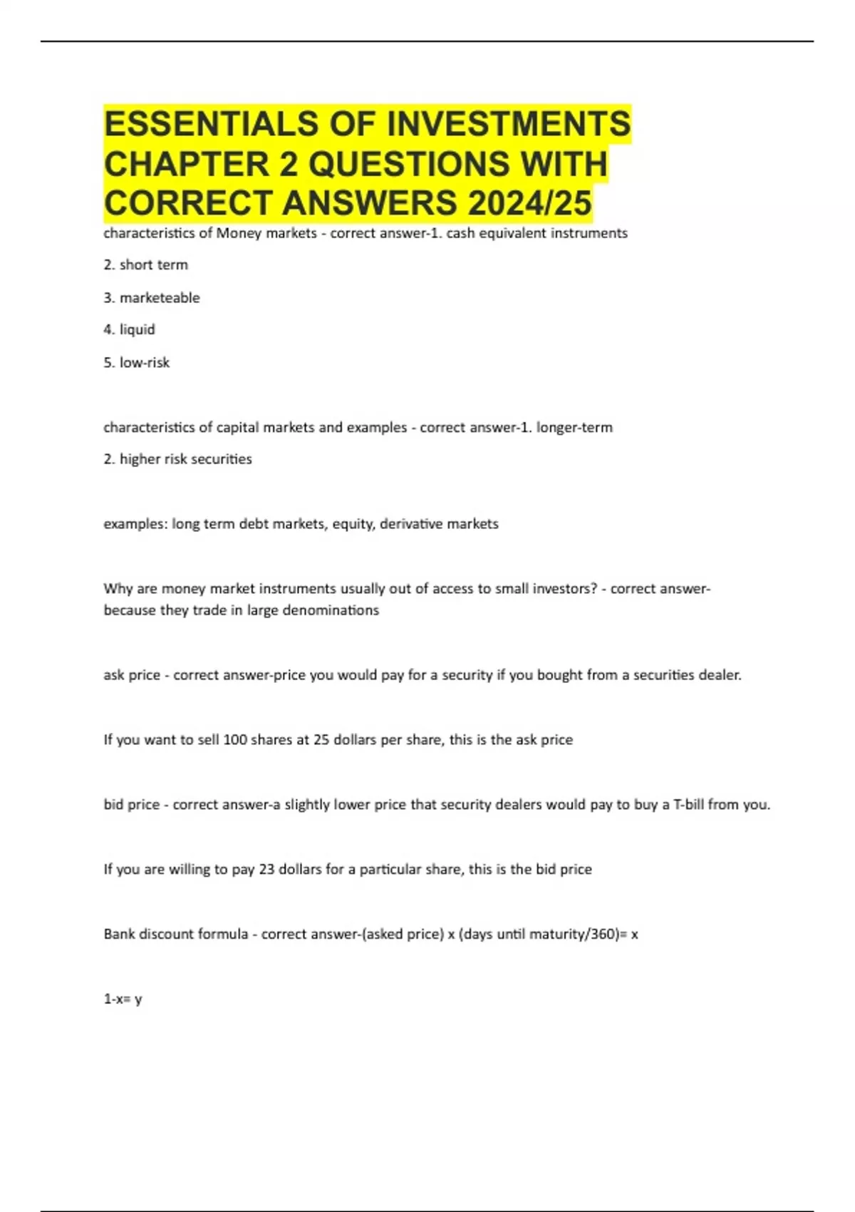 BankVdiscountVformulaV-VcorrectVanswer-(askedVprice)VxV(daysVuntilVmaturity/360)=Vx