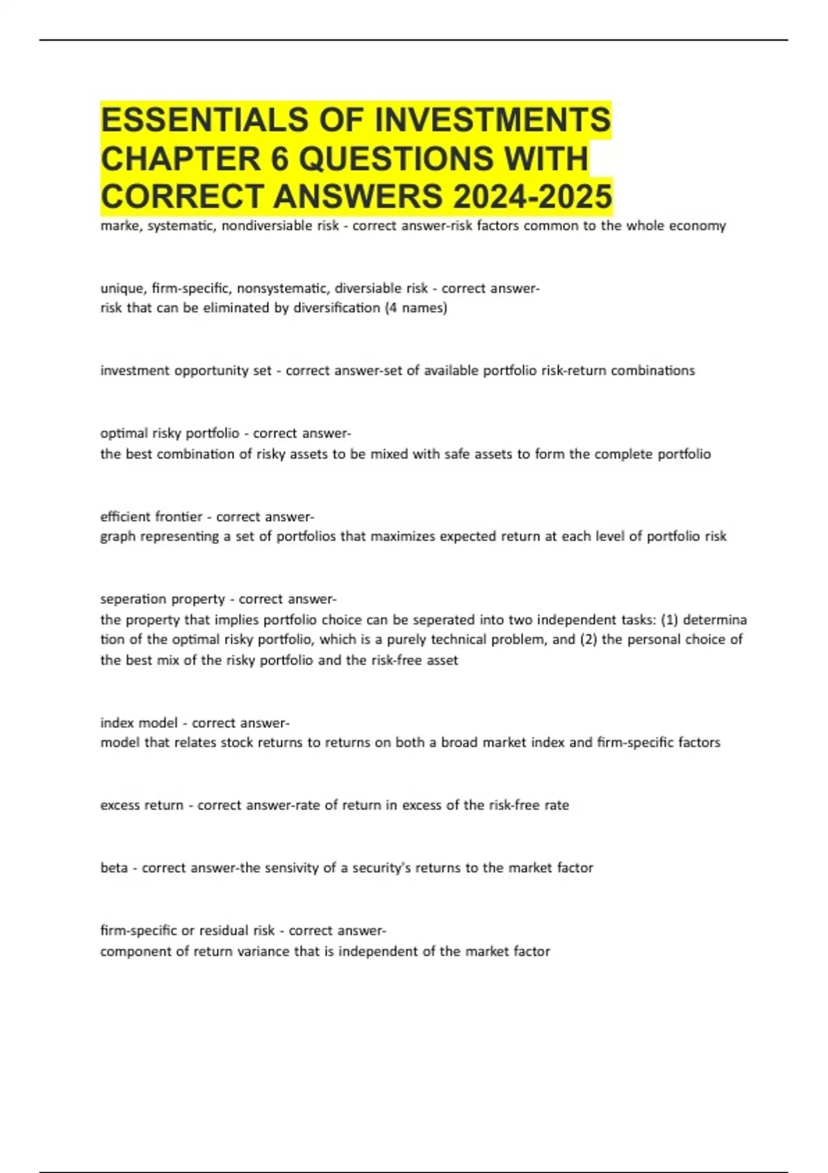 ESSENTIALS OF INVESTMENTS CHAPTER 6 QUESTIONS WITH CORRECT ANSWERS .