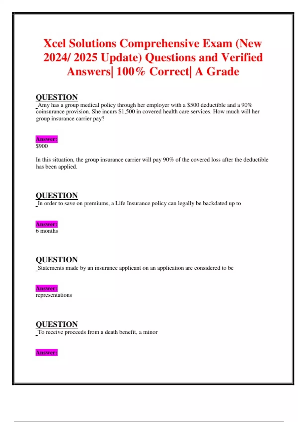 Amy has a group medical policy through her employer with a $500 deductible and a 90%