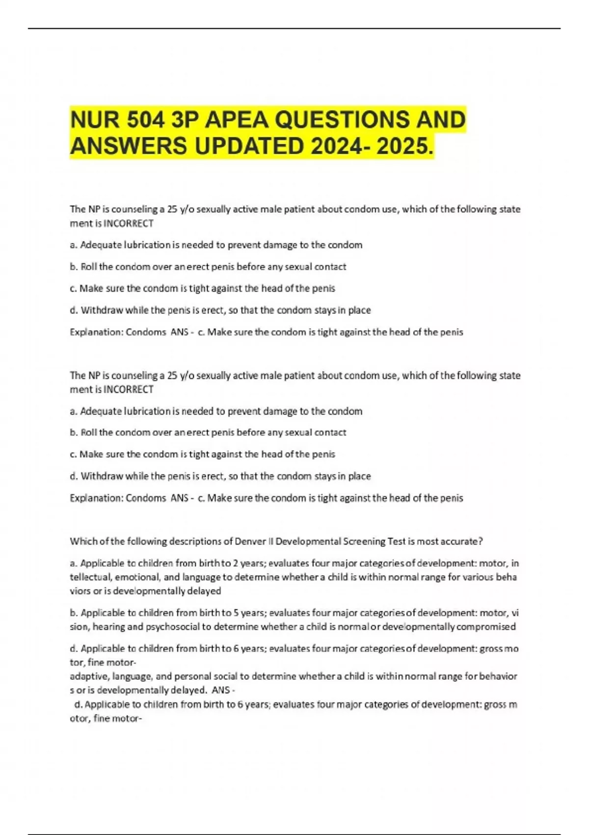 NUR 504 3P APEA QUESTIONS AND ANSWERS UPDATED .