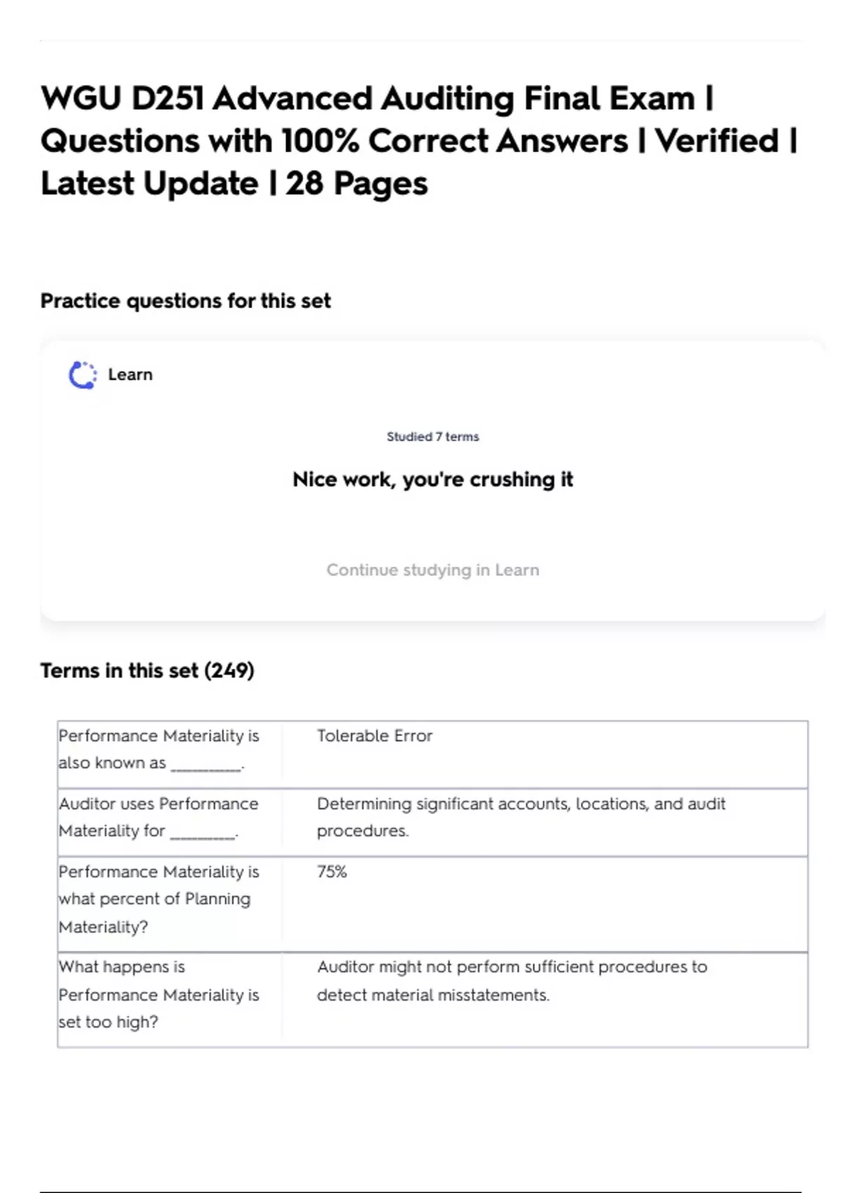 WGU D251 Advanced Auditing Final Exam | Questions with 100% Correct Answers | Verified | Latest Update | 28 Pages
