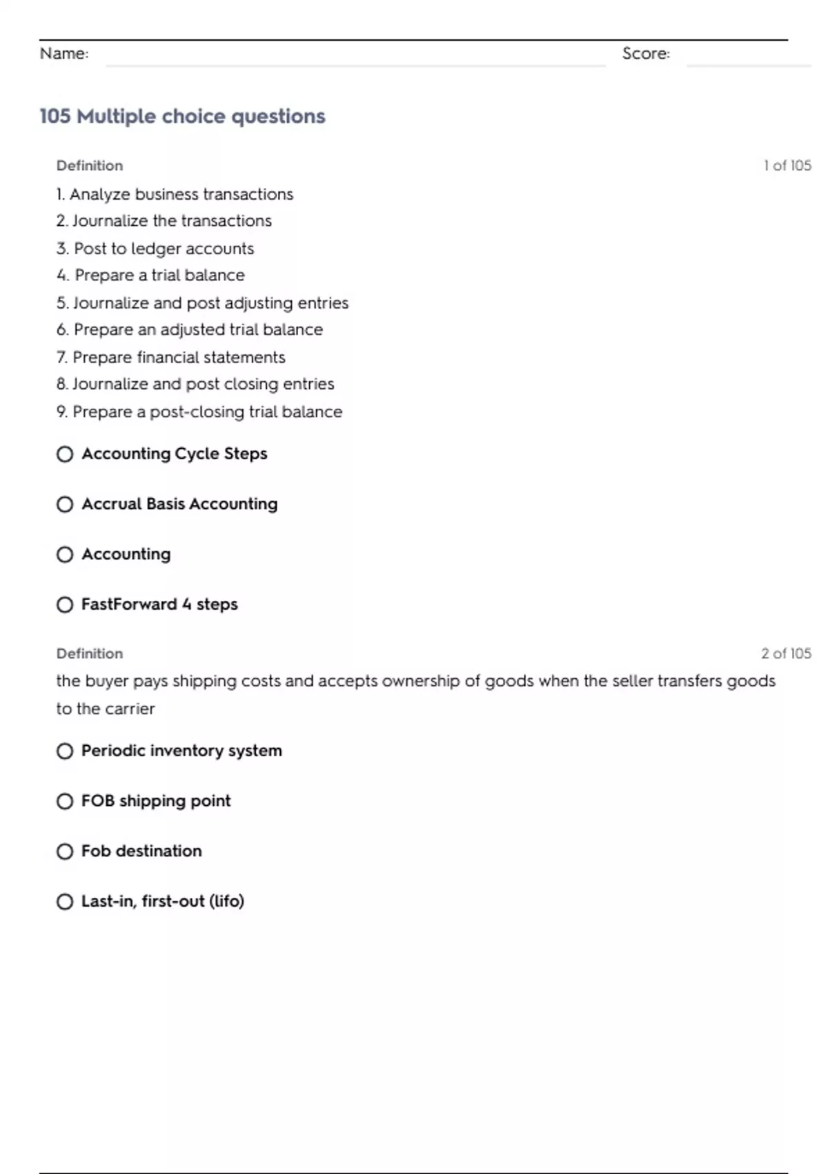 Name: Score: