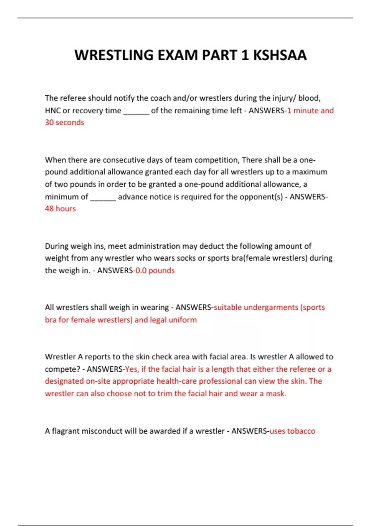 All wrestlers shall weigh in wearing - ANSWERS-suitable undergarments (sports