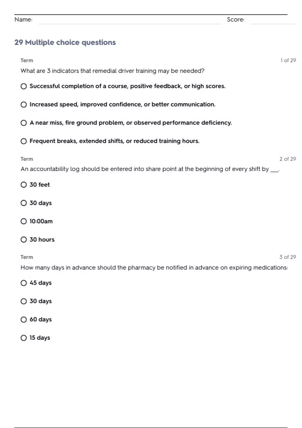29 Multiple choice questions