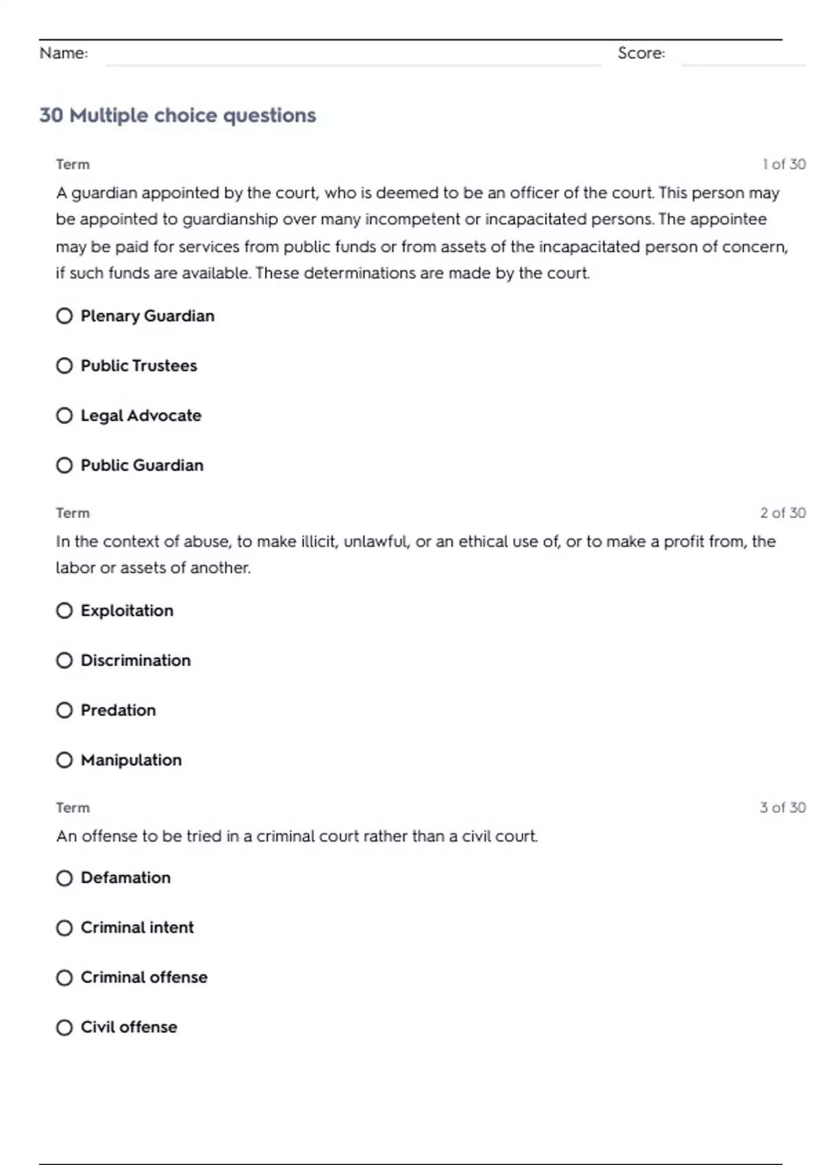Name: Score: