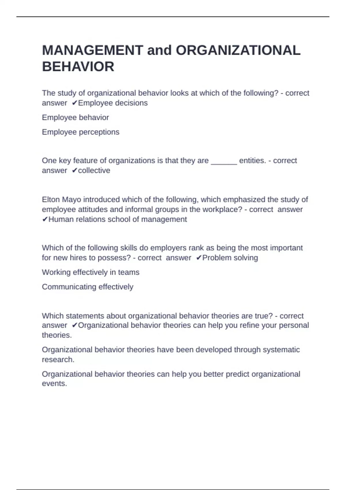 Which statements about organizational behavior theories are true? - correct