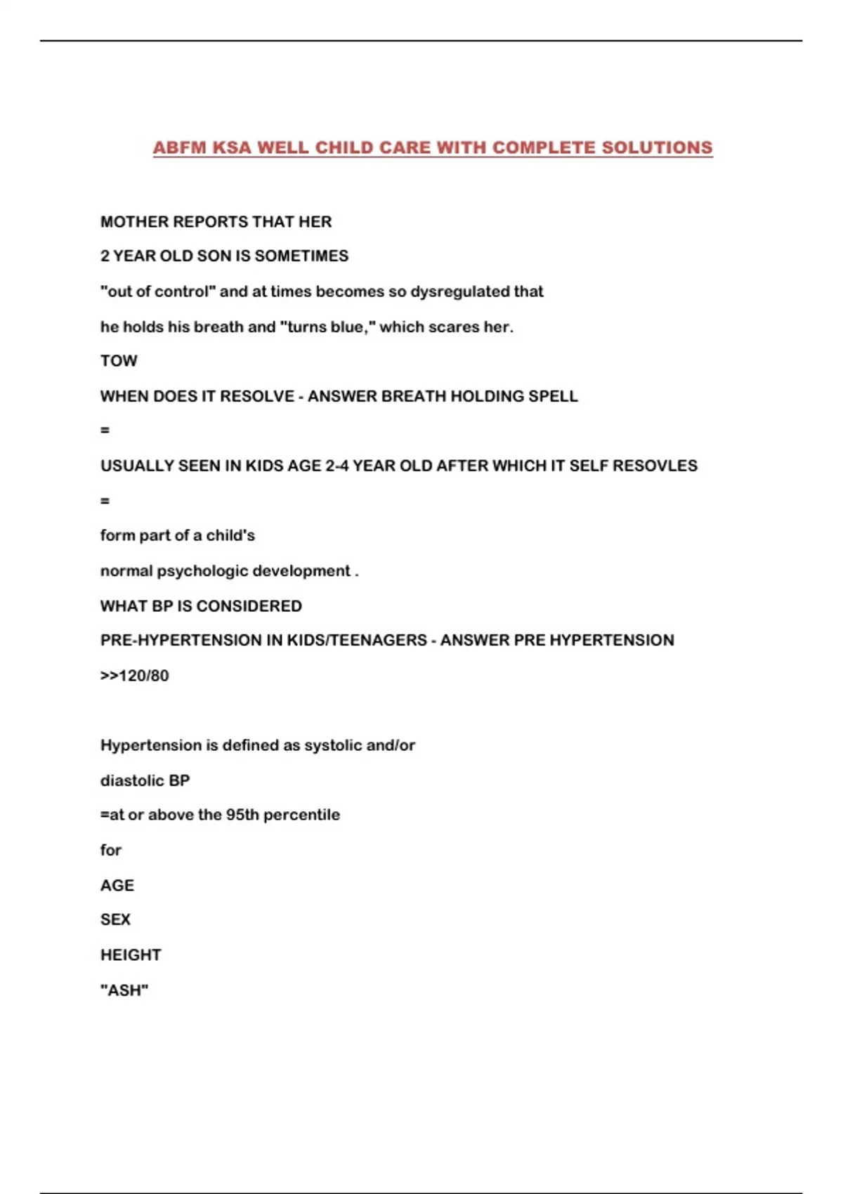PRE-HYPERTENSION IN KIDS/TEENAGERS - ANSWER PRE HYPERTENSION