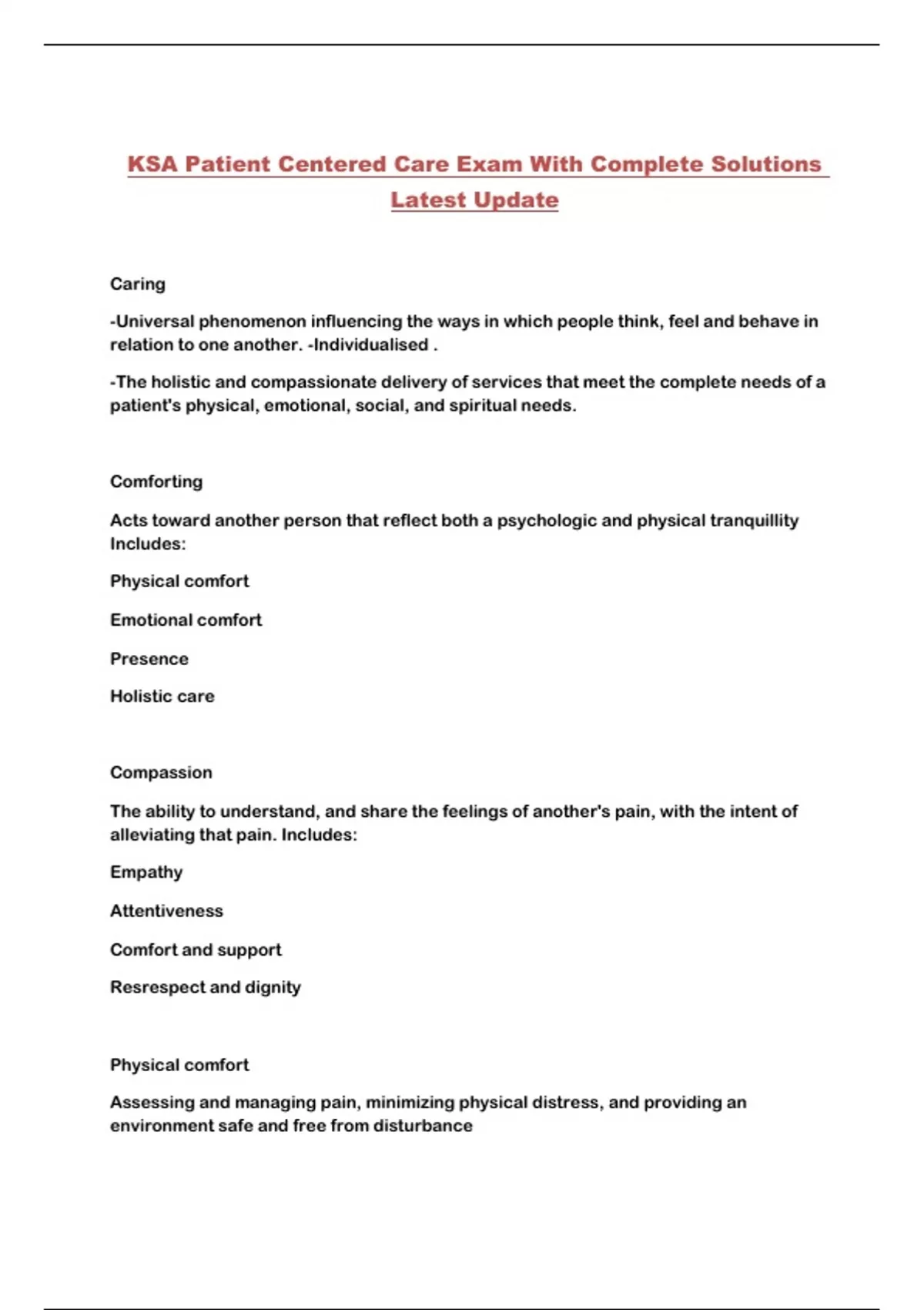 KSA Patient Centered Care Exam With Complete Solutions