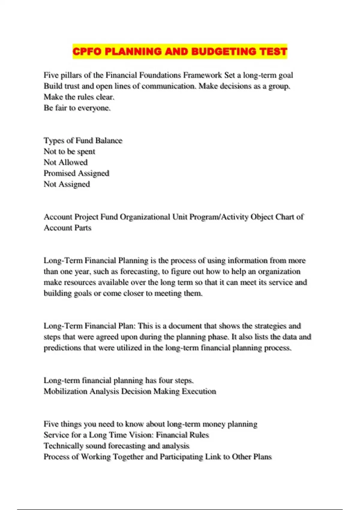CPFO PLANNING AND BUDGETING TEST