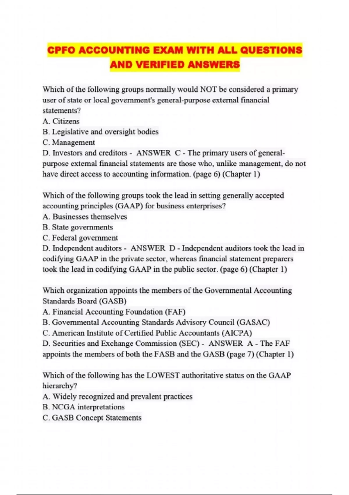 CPFO ACCOUNTING EXAM WITH ALL QUESTIONS AND VERIFIED ANSWERS....