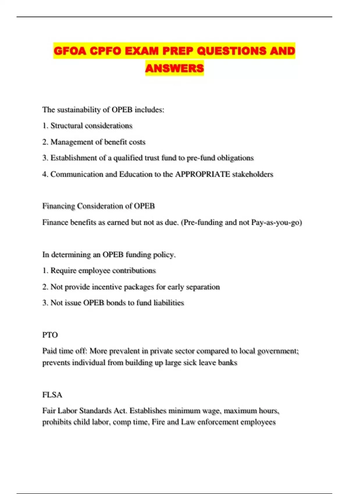 GFOA CPFO EXAM PREP QUESTIONS AND