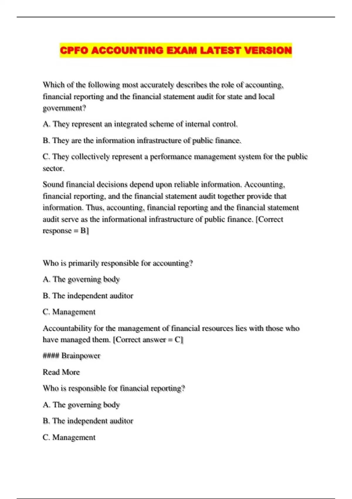 CPFO ACCOUNTING EXAM LATEST VERSION