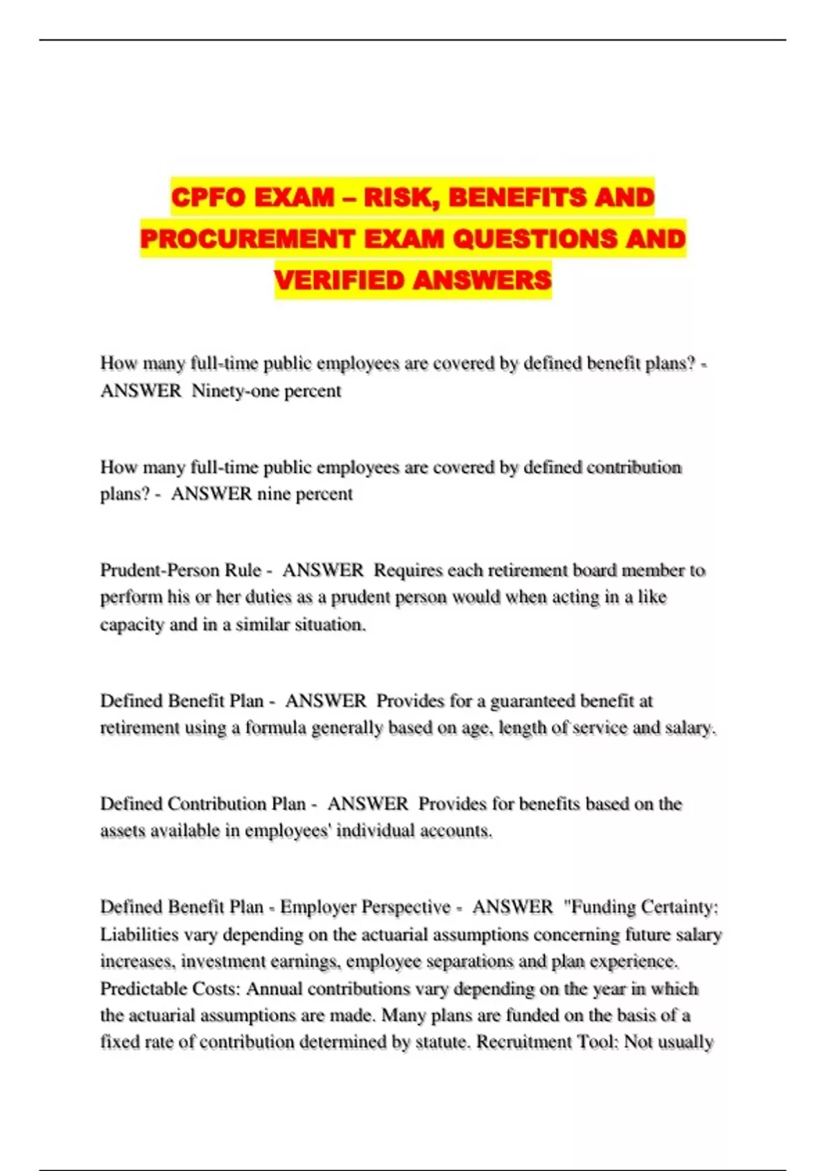 Defined Benefit Plan - ANSWER Provides for a guaranteed benefit at