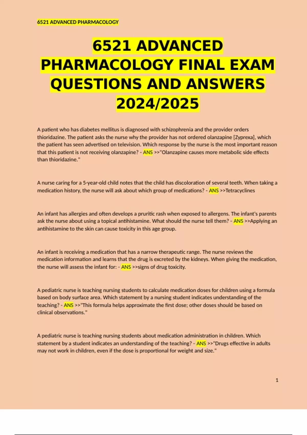 ADV. PHARMACOLOGY FINAL 6521 EXAM QUESTIONS AND ANSWERS