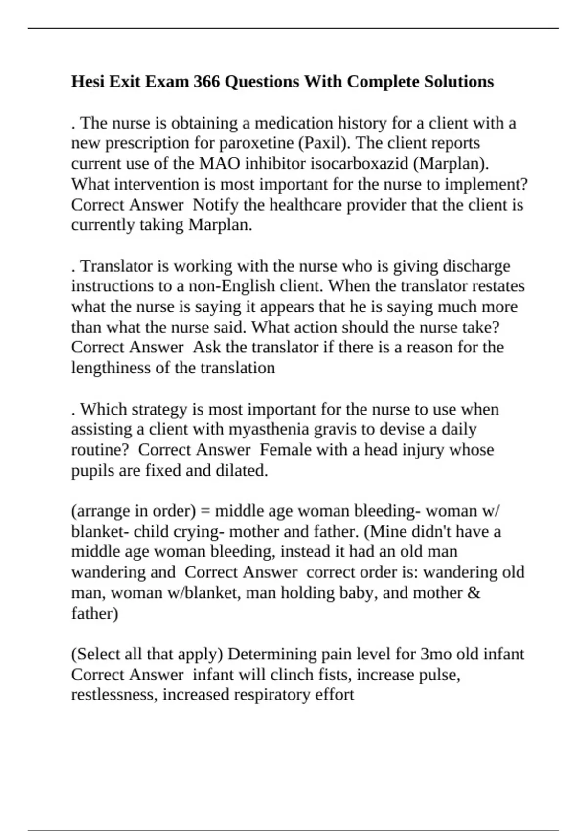 condition? Correct Answer Acute withdrawal from
