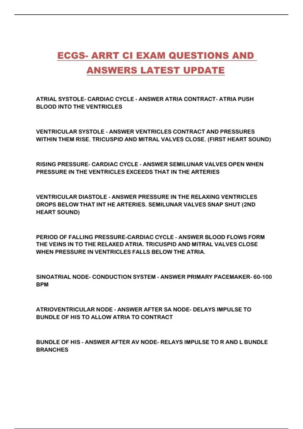 ECGS- ARRT CI EXAM QUESTIONS AND