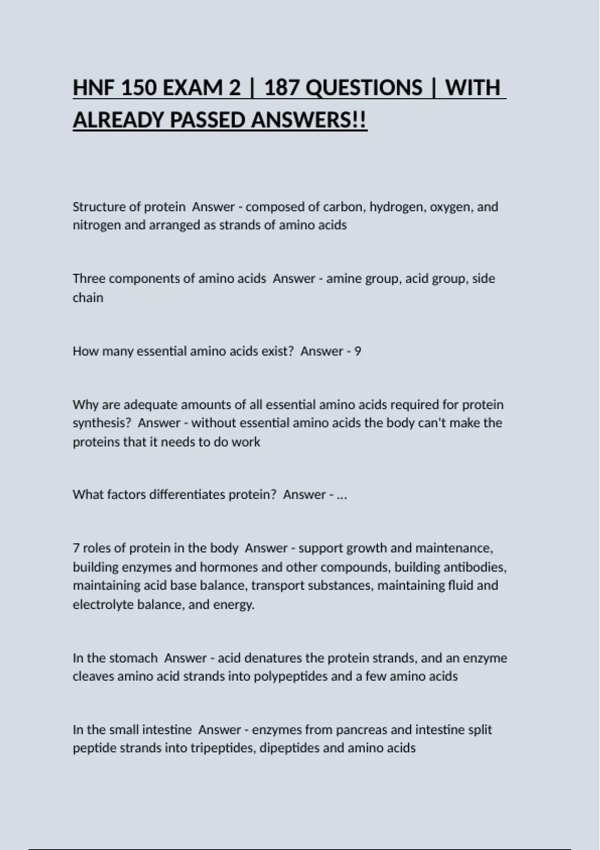 HNF 150 EXAM 2 | 187 QUESTIONS | WITH ALREADY PASSED ANSWERS!!