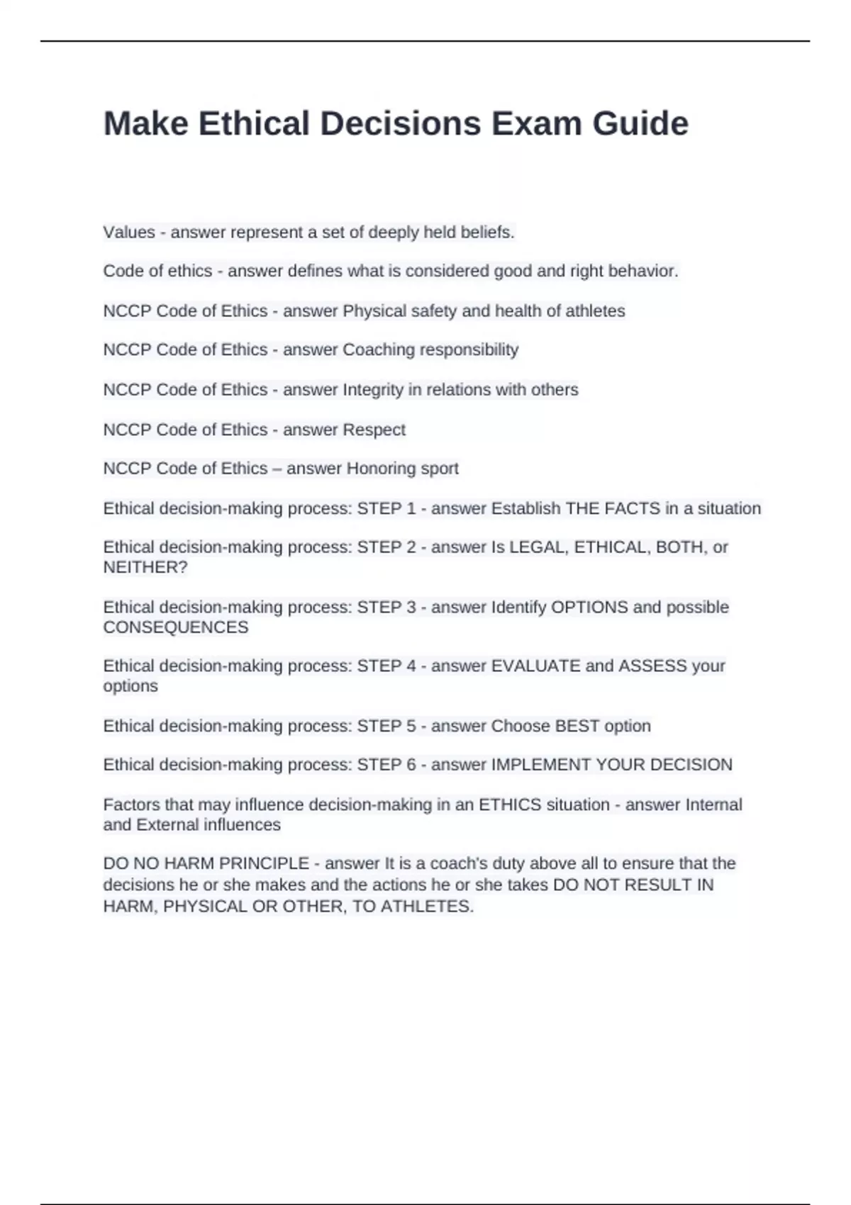 Make Ethical Decisions Exam Guide