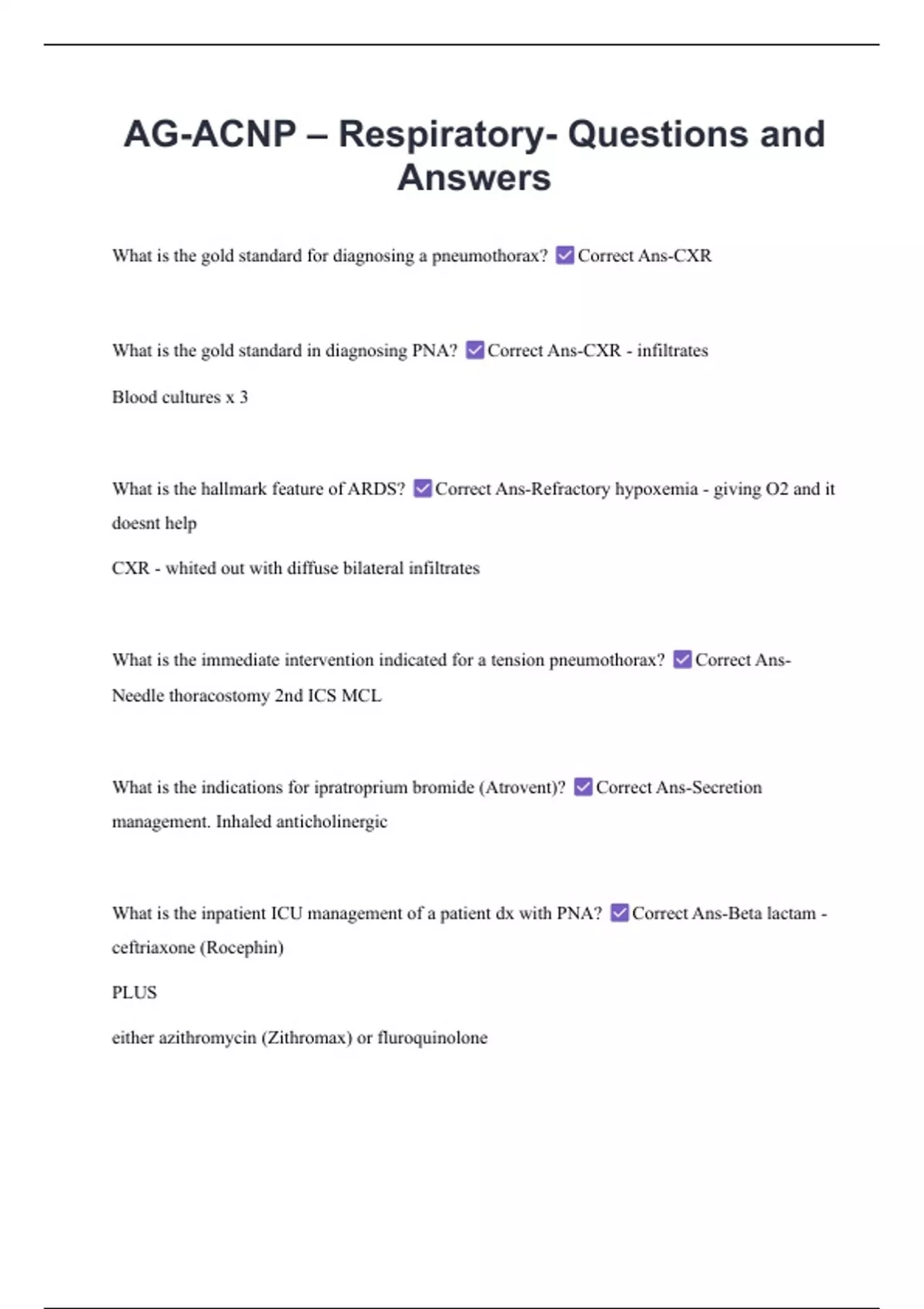What is the inpatient ICU management of a patient dx with PNA? Correct Ans-Beta lactam -