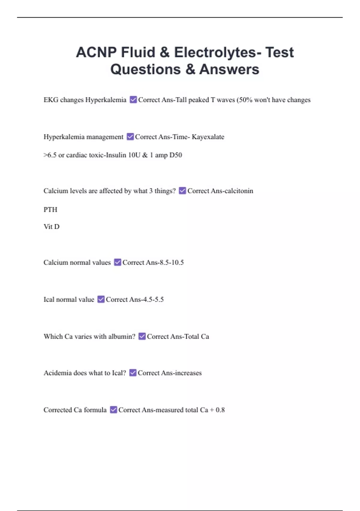 ACNP Fluid & Electrolytes- Test Questions & Answers