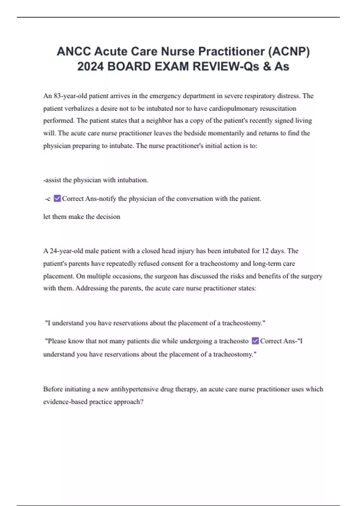 with them. Addressing the parents, the acute care nurse practitioner states: