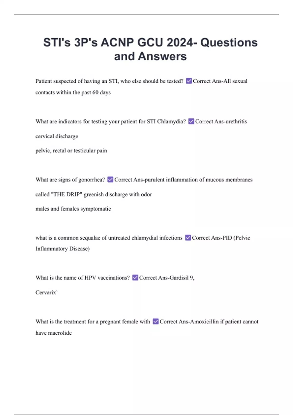 Patient suspected of having an STI, who else should be tested? Correct Ans-All sexual