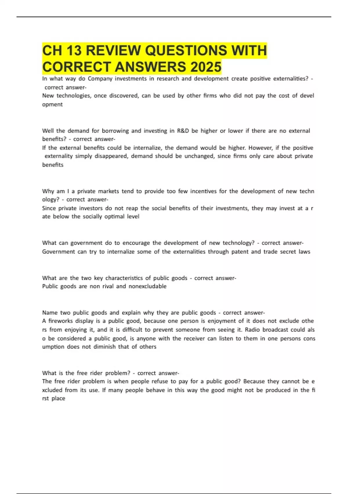 CORRECT ANSWERS 2025