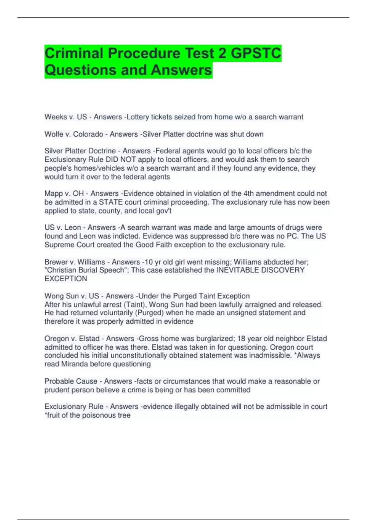 Criminal Procedure Test 2 GPSTC Questions and Answers