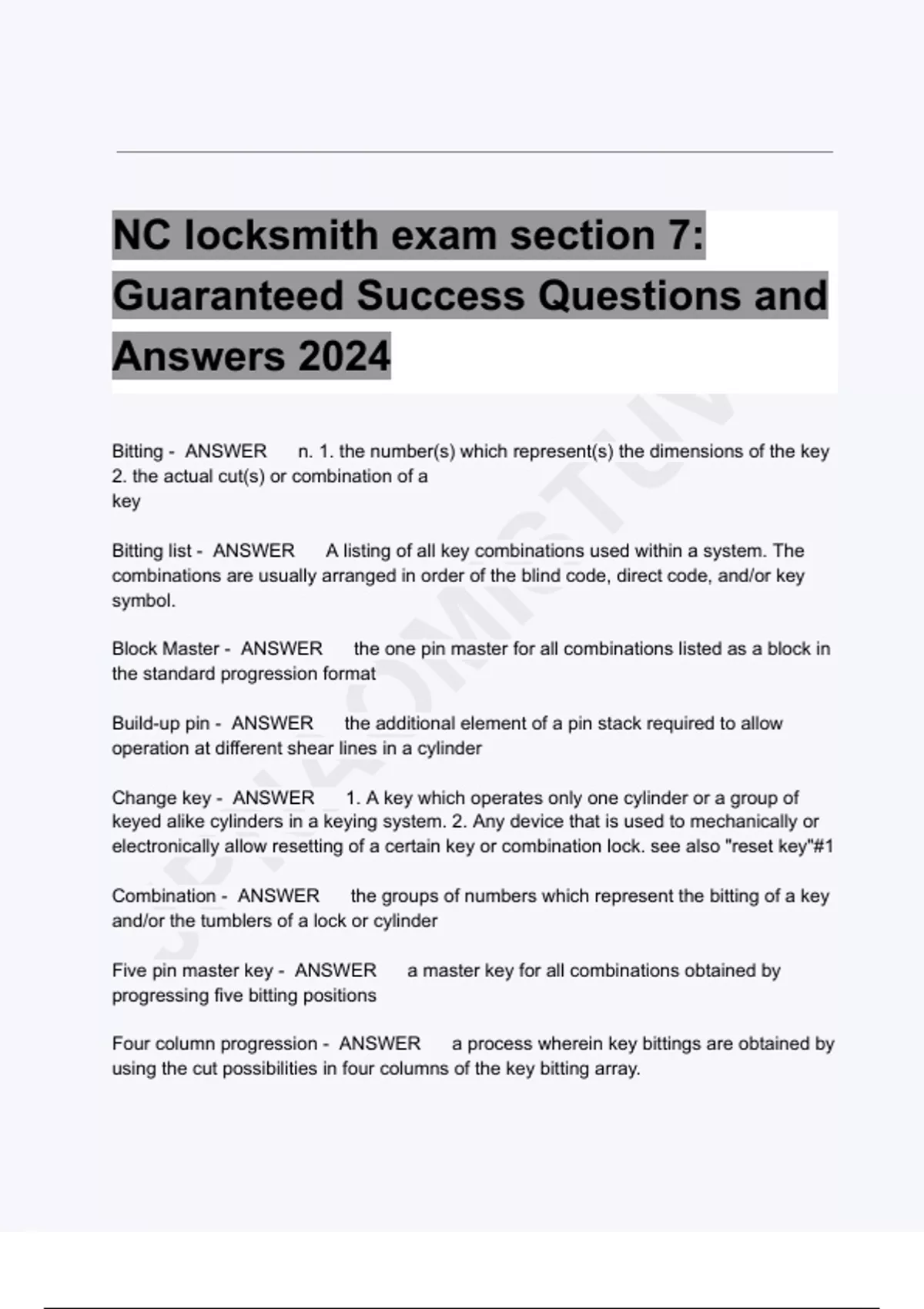 Bitting list - ANSWER A listing of all key combinations used within a system. The