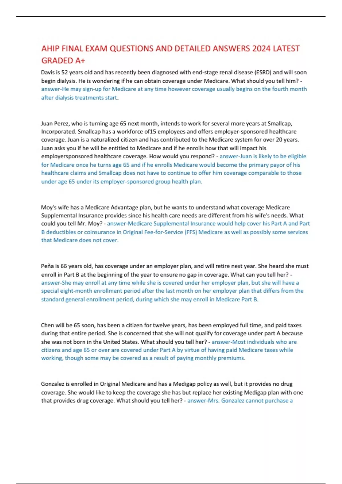 AHIP FINAL EXAM QUESTIONS AND DETAILED ANSWERS 2024 LATEST