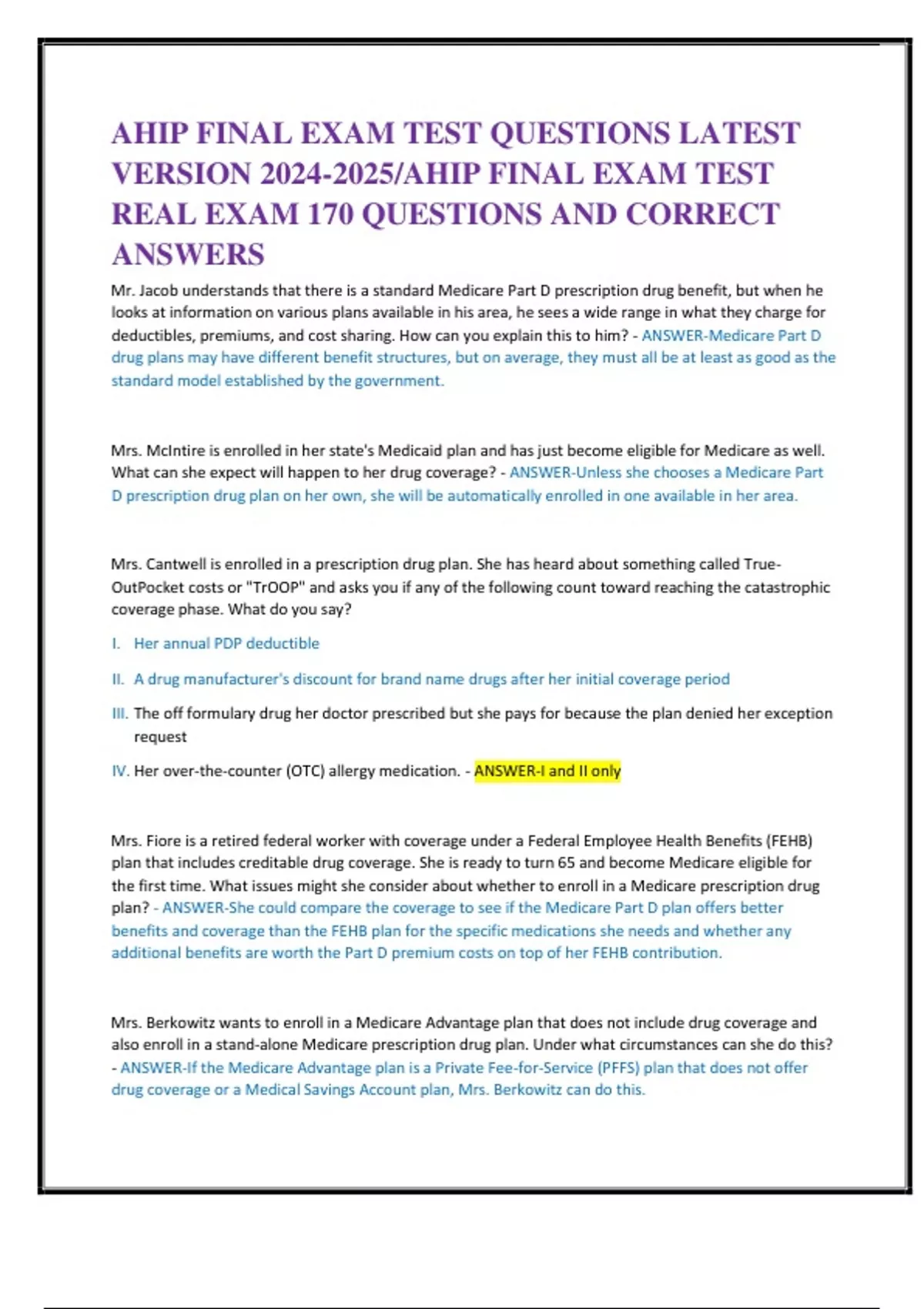 VERSION 2024-2025/AHIP FINAL EXAM TEST