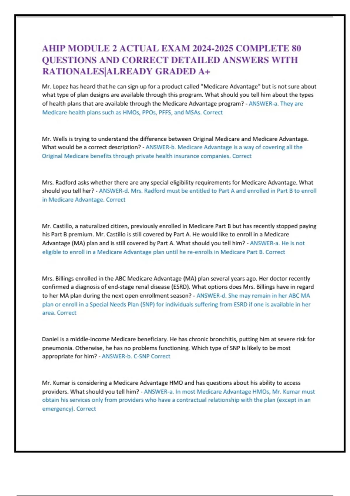 AHIP MODULE 2 ACTUAL EXAM 2024-2025 COMPLETE 80