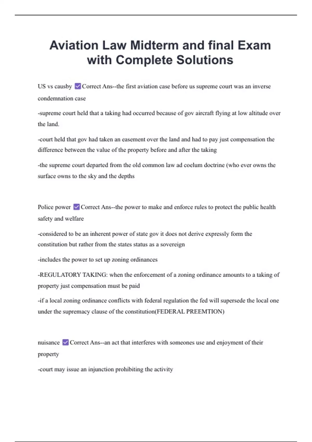 US vs causby Correct Ans--the first aviation case before us supreme court was an inverse