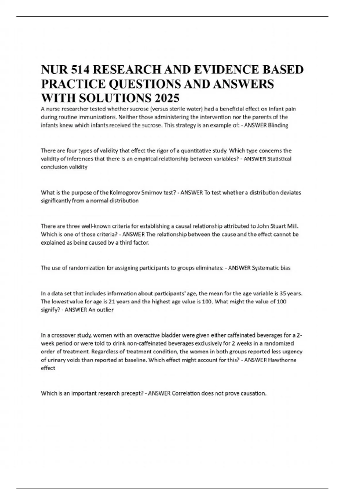 NUR 514 RESEARCH AND EVIDENCE BASED PRACTICE QUESTIONS AND ANSWERS WITH SOLUTIONS 2025