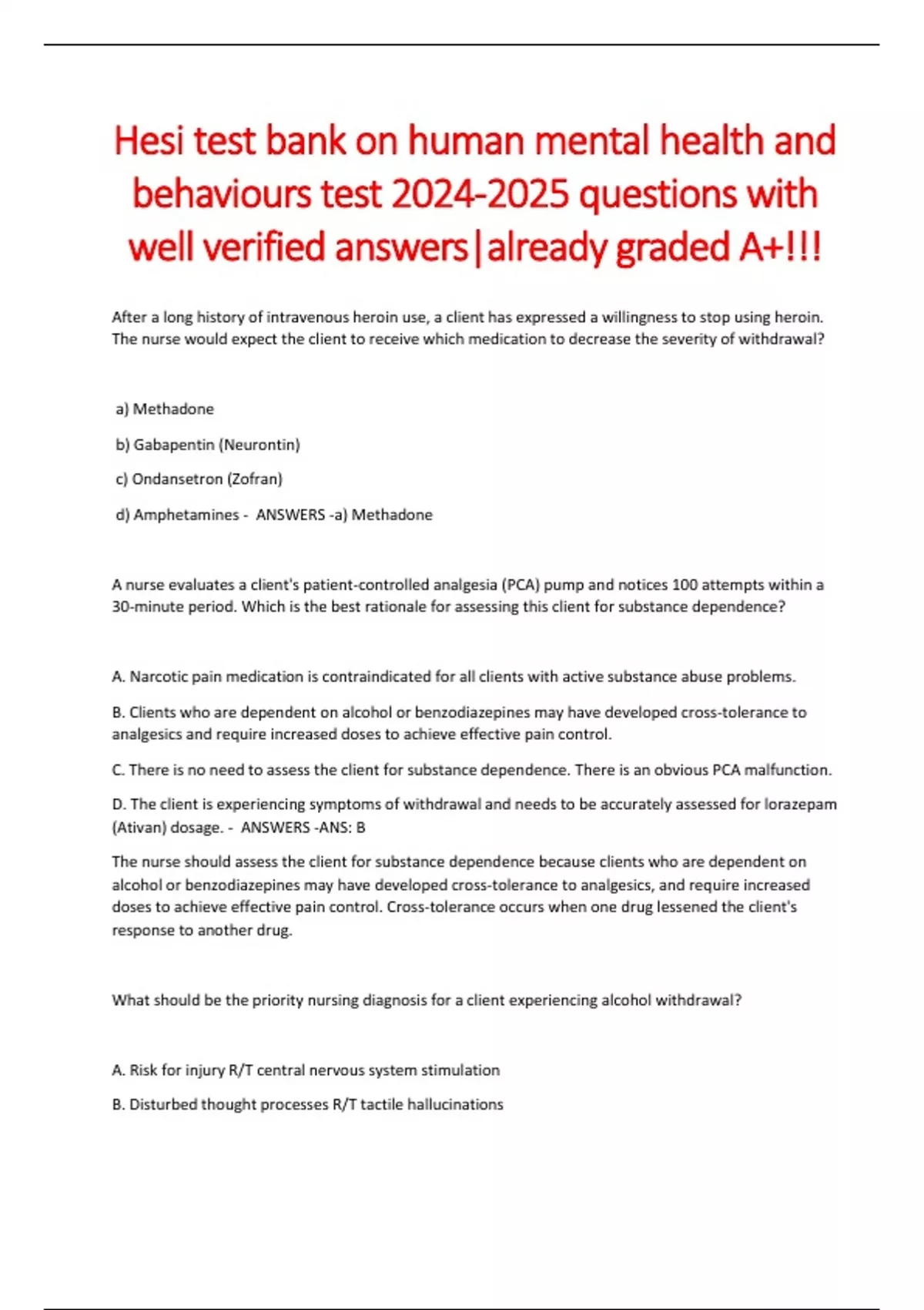 D. Ineffective denial R/T continued alcohol use despite negative consequences - ANSWERS -ANS: A