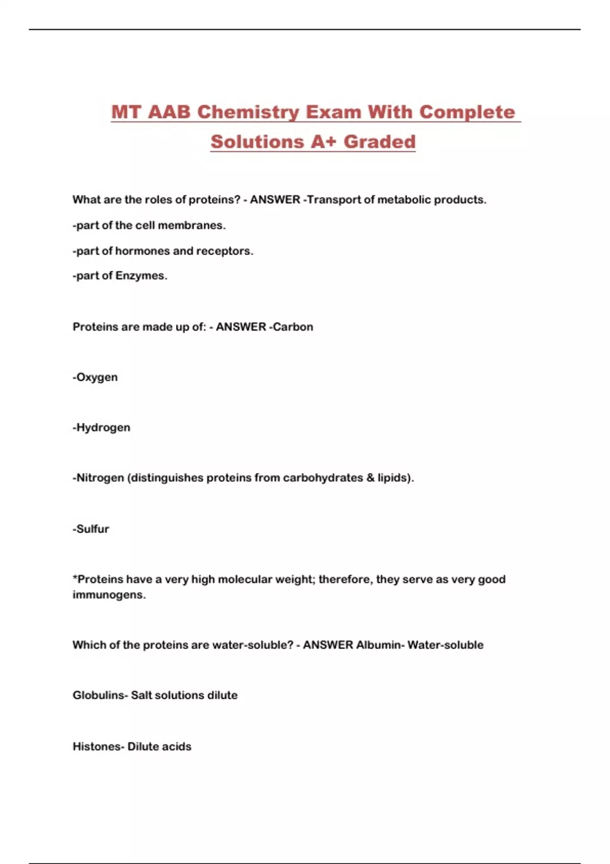 Which of the proteins are water-soluble? - ANSWER Albumin- Water-soluble