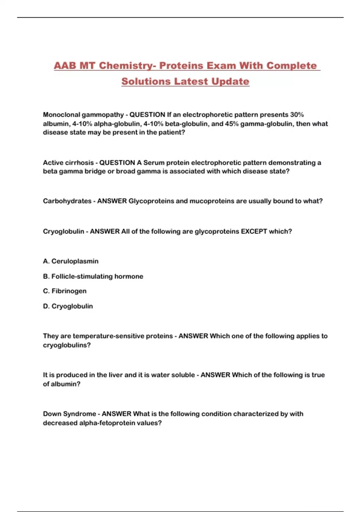 AAB MT Chemistry- Proteins Exam With Complete Solutions Latest Update...