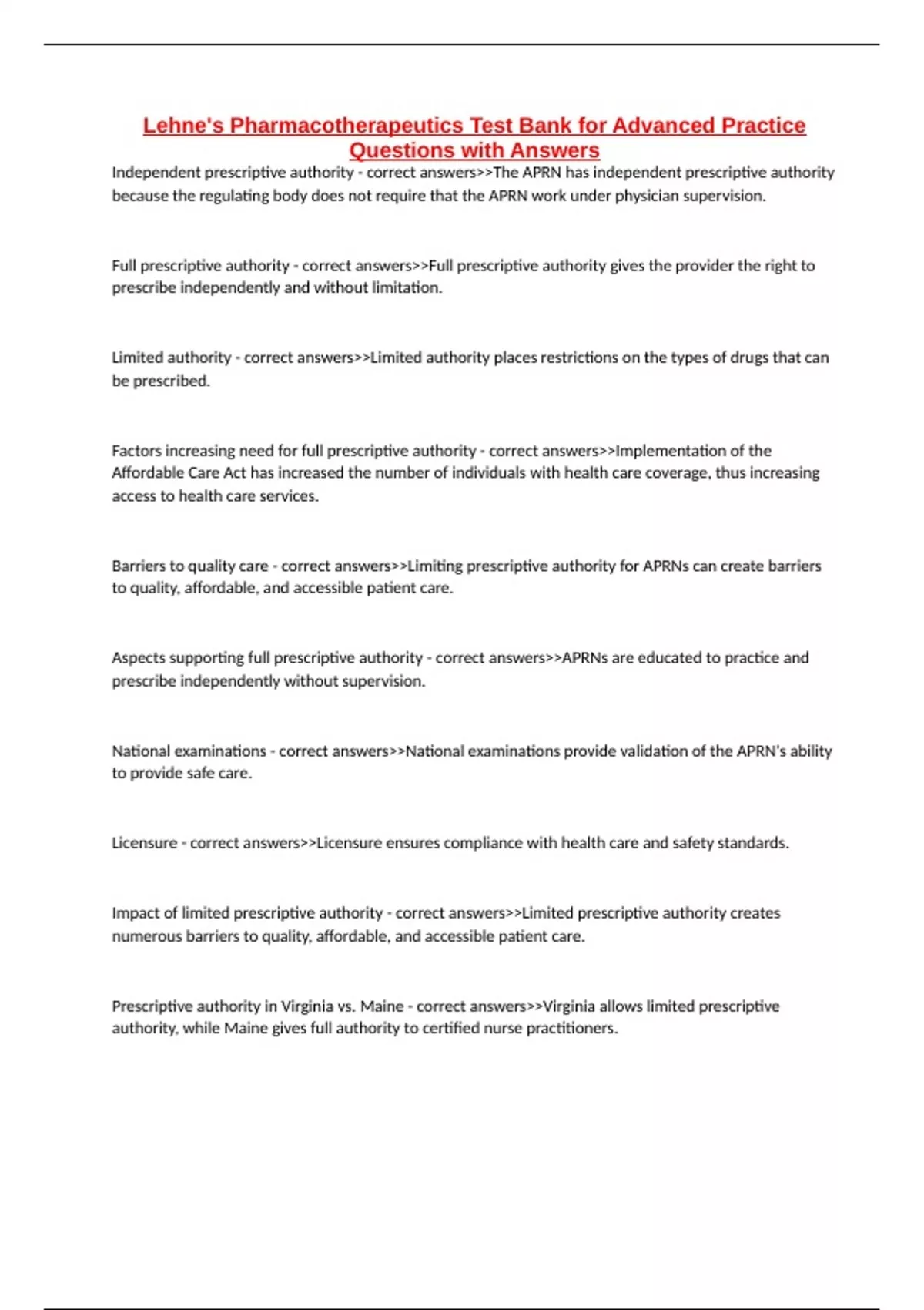 Full prescriptive authority - correct answers>>Full prescriptive authority gives the provider the right to