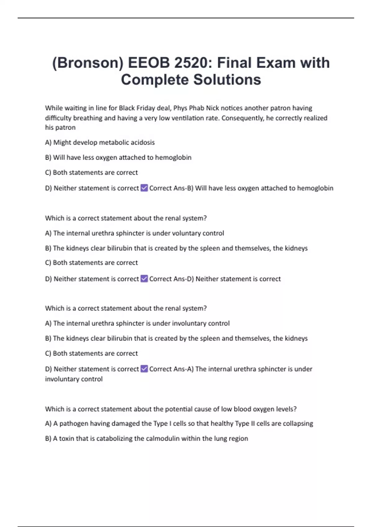 (Bronson) EEOB 2520: Final Exam with Complete Solutions