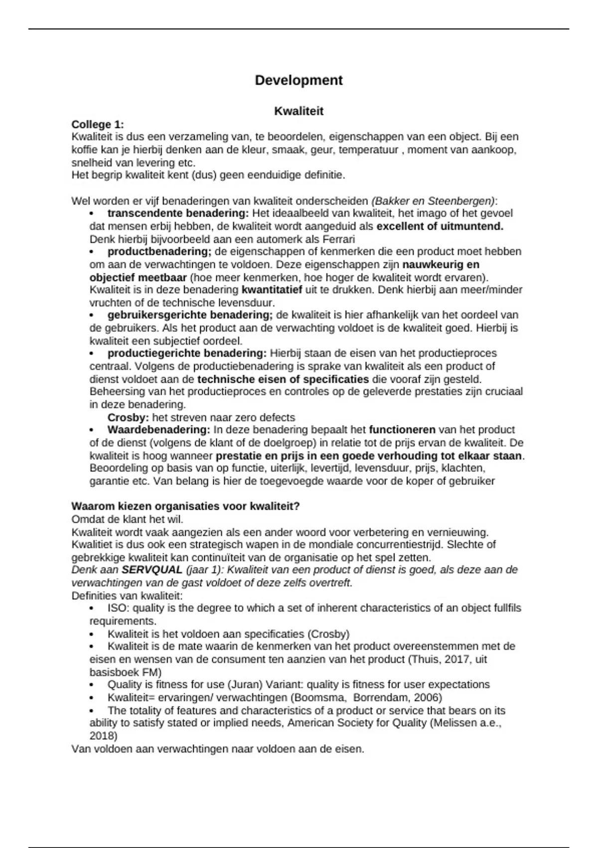 centraal. Volgens de productiebenadering is sprake van kwaliteit als een product of