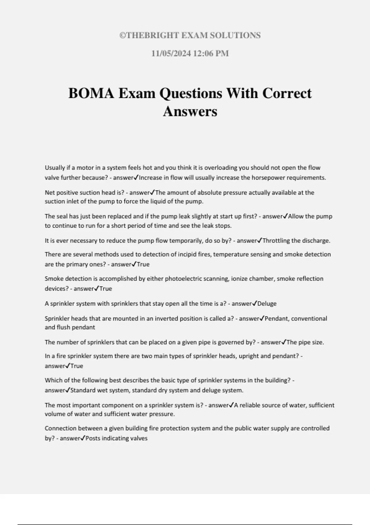 BOMA Exam Questions With Correct